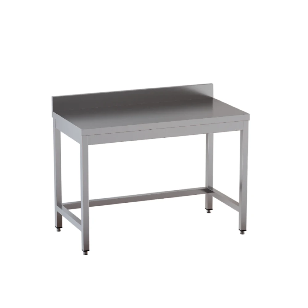 Tavolo da lavoro professionale su gambe con telaio e alzatina, realizzato in acciaio inox per garantire resistenza, igiene e lunga durata nel tempo. Ideale per ottimizzare lo spazio e migliorare l’efficienza operativa in cucine professionali, laboratori alimentari, ristoranti e ambienti food.