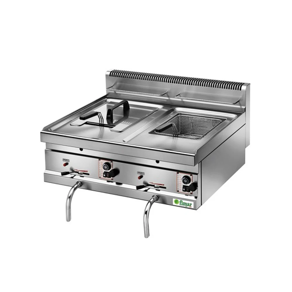 La friggitrice a gas SF10DM è la soluzione ideale per chi cerca prestazioni elevate e risparmio energetico in cucina. Con doppia vasca da 10 litri ciascuna, è perfetta per ristoranti, pizzerie e gastronomie con elevato volume di lavoro.