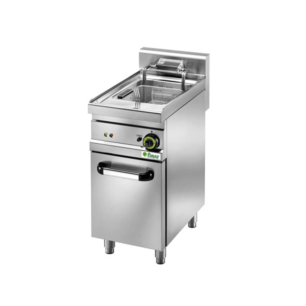 La friggitrice elettrica SFM18 è progettata per un utilizzo intensivo in cucine professionali, ristoranti e laboratori gastronomici. Dotata di una vasca da 18 litri, questa friggitrice è montata su mobile con struttura, vasca, coperchio, cestello e resistenze completamente in acciaio inox AISI 304 per garantire massima igiene, durata e resistenza all’uso.