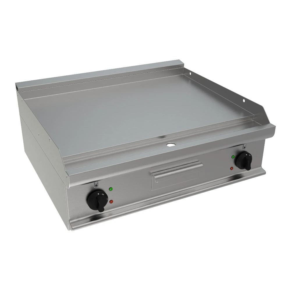 Piastra a gas professionale ideale per ristoranti, gastronomie e cucine industriali. Realizzata in acciaio inox AISI 304, offre massima resistenza e igiene. La piastra liscia da 15 mm garantisce una cottura uniforme, mentre le due zone indipendenti permettono di gestire più preparazioni contemporaneamente.