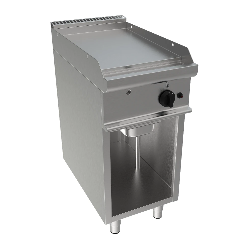 Frytop a gas da 40 cm con piastra liscia, potenza 6 kW. Ideale per una cottura uniforme e professionale.