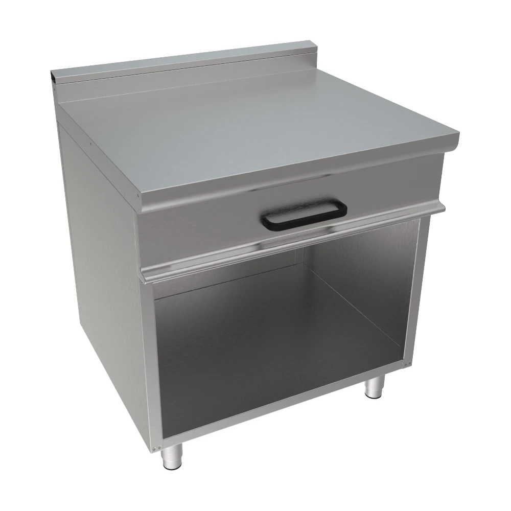 Elemento neutro modulare da banco o da appoggio, disponibile in due larghezze (70 o 80 cm), con profondità 70 cm e altezza 85 cm, ideale per completare le linee di cottura professionali.