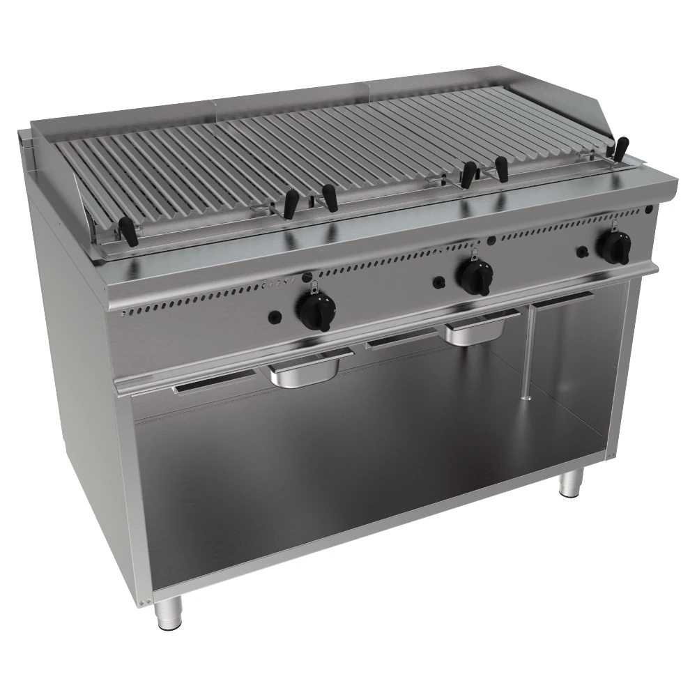 Griglia a gas da 120 cm (18 kg di pietra lavica) per cotture intense e uniformi in grandi cucine professionali.