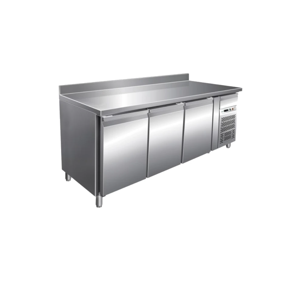 Il tavolo refrigerato G-GN3200TN con alzatina è la soluzione ideale per ambienti gastronomici e professionali che necessitano di conservazione positiva di alimenti freschi a temperature controllate tra -2°C e +8°C nella versione in acciaio inox aisi 304 e 0°C+8°C nella versione in acciaio aisi 201. Realizzato in acciaio inox, assicura robustezza, igiene e facilità di pulizia, adattandosi perfettamente a cucine professionali, bar e negozi alimentari.