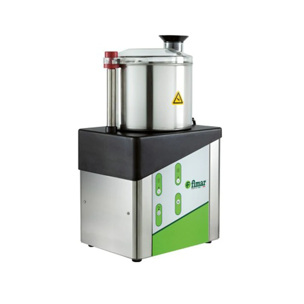 Il cutter CL5NV2 è una macchina professionale ideale per le preparazioni quotidiane in cucina. È dotato di una struttura solida con carcassa e vasca realizzate in acciaio inox AISI 304, sinonimo di igiene e resistenza. Il coperchio superiore in policarbonato alimentare trasparente consente di controllare visivamente le lavorazioni, mentre la pulsantiera a pressione assicura semplicità d’uso.